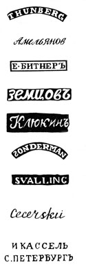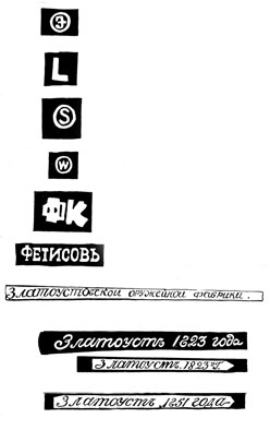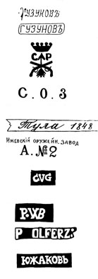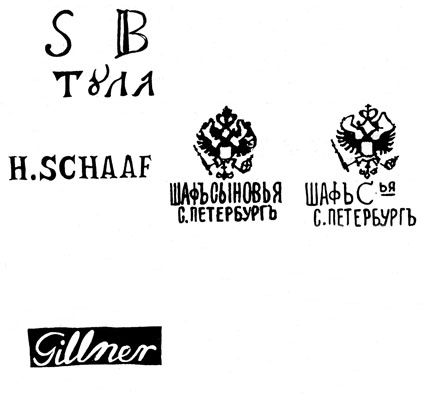 Venäläisiä ja ulkomaalaisia tehtaan leimauksia: