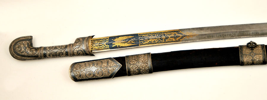Lahjamiekka rykmentin komentajalle, koristeltu damastiterä