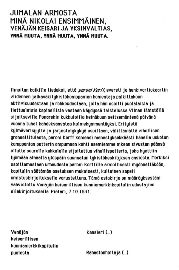 annettiin jo Katariina II hallituskaudella sotapäälliköille (Suvorov,