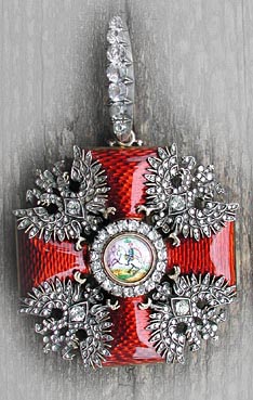 Pyhän oikeauskoisen suuriruhtinaan Aleksanteri Nevskin keisarillinen kunniamerkki myönnettiin myös briljanttikoristein. Ohessa merkki, joka on valmistettu Aleksanteri III aikana. Luovutuskirjassa on Aleksanteri III allekirjoitus.