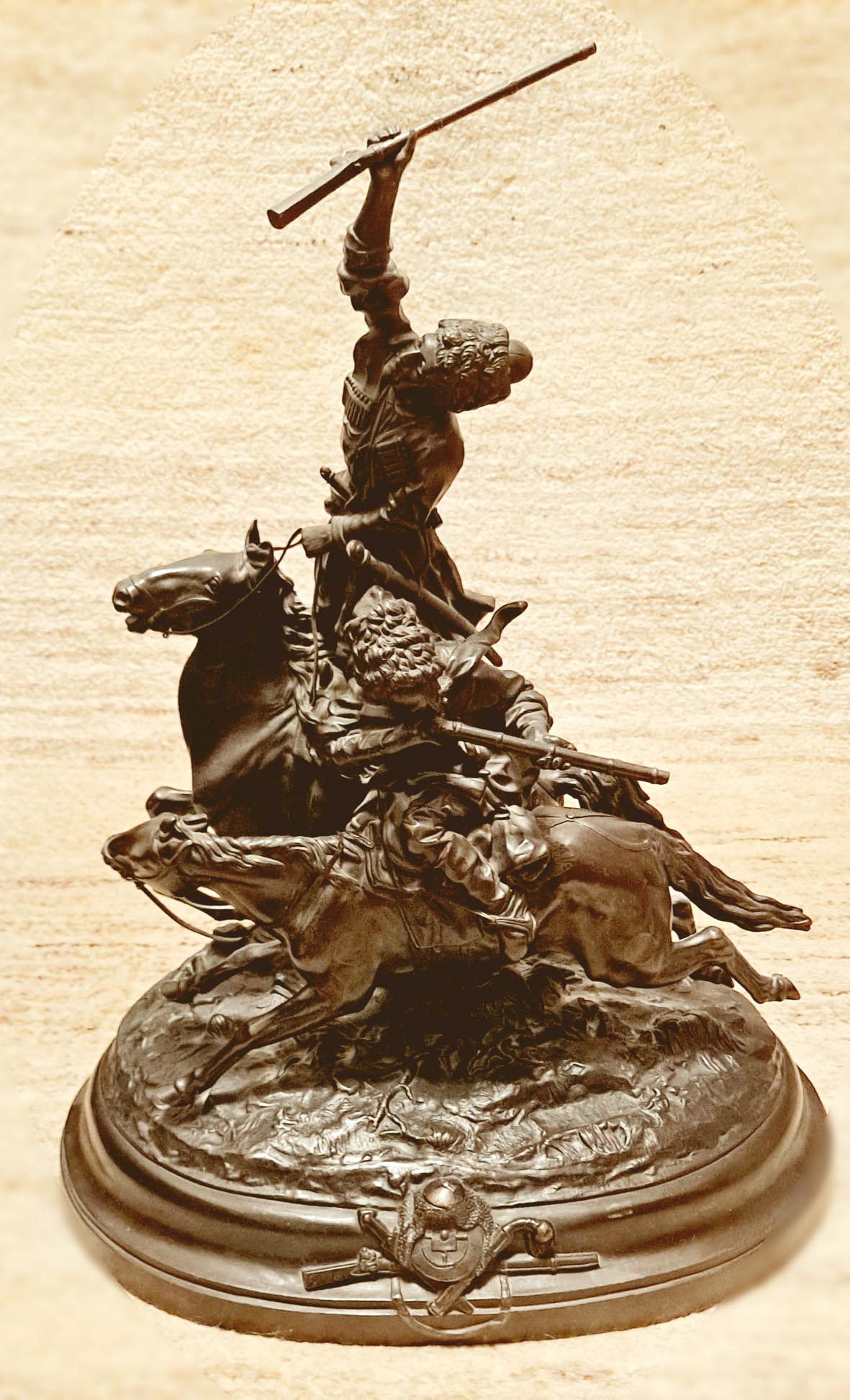 Kasakoiden taitoratsastus. Patsas ~1800-luvun loppu