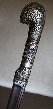 varustettu miekka. Miekan terät saattoivat olla kauniisti koristeltuja